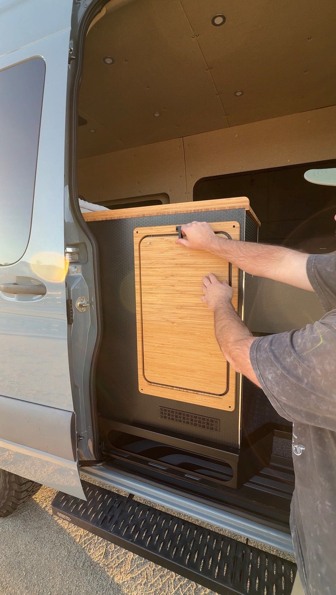 Mounts to any flat surface — perfect for van slider doors, cabinets, or compact spaces